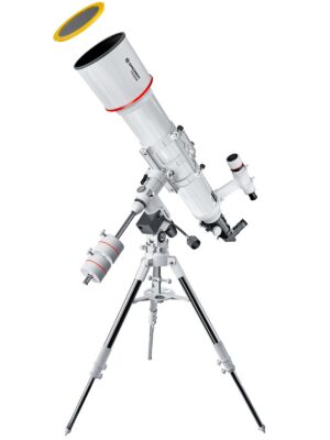 It is a Maksutov telescope with an aperture of 127mm and a focal length of 1500mm. The telescope’s optics consist of a spherical meniscus corrector (negative meniscus lens made of chronicle glass), a primary mirror, and a secondary mirror located on the inside of the meniscus. Telescopes of this type have a reduced coma, astigmatism and, as a rule, show only residual chromatic aberration. They provide sensationally sharp and expressive images. Due to the significant focal length and low light, they are perfect for observing the Moon and planets. After retrofitting with a 30-40mm eyepiece, the telescope can be used to observe bright deep sky objects.